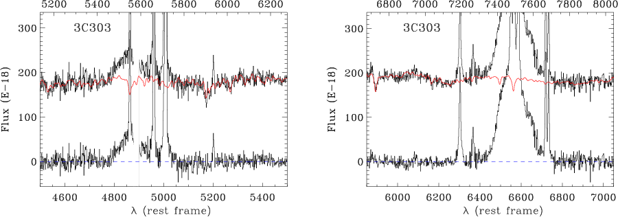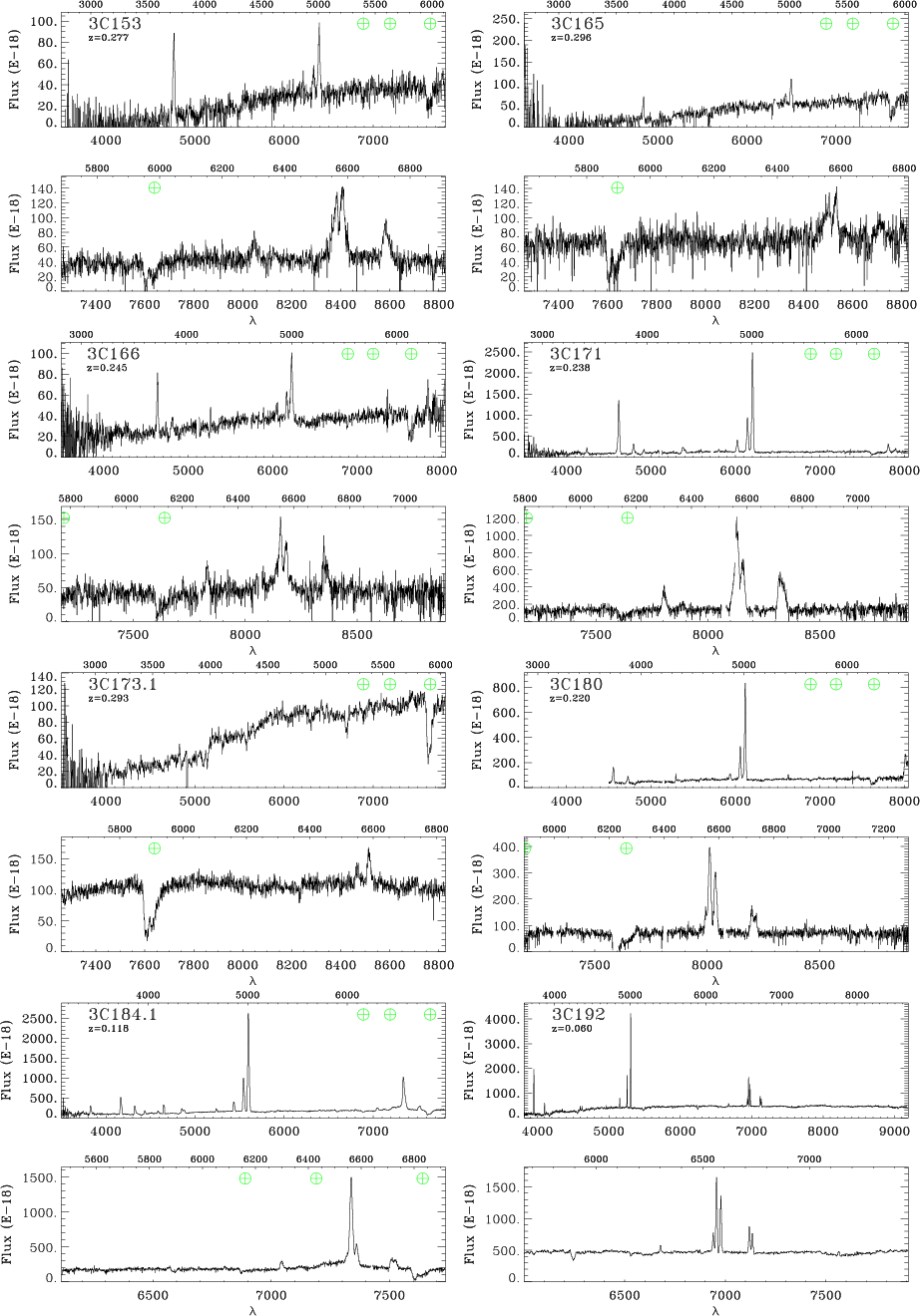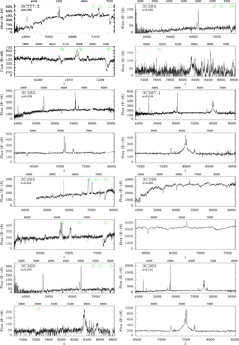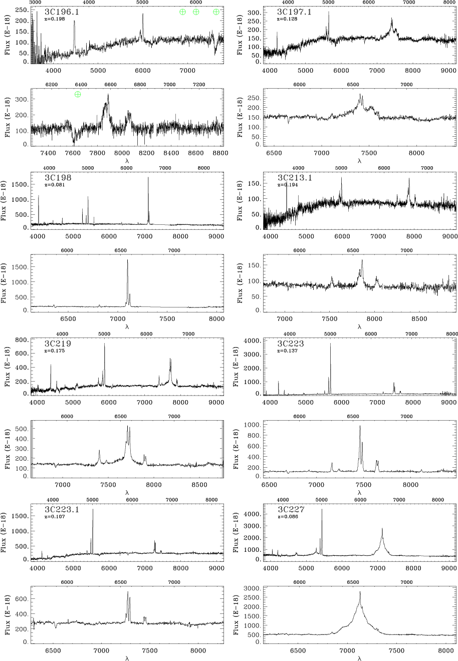 component. Broad lines can be very strong, as in 3C 273, or, as in 3C 184.1, they become clearly visible only after the subtraction of the stellar light. Figure 8 shows all spectra showing the H