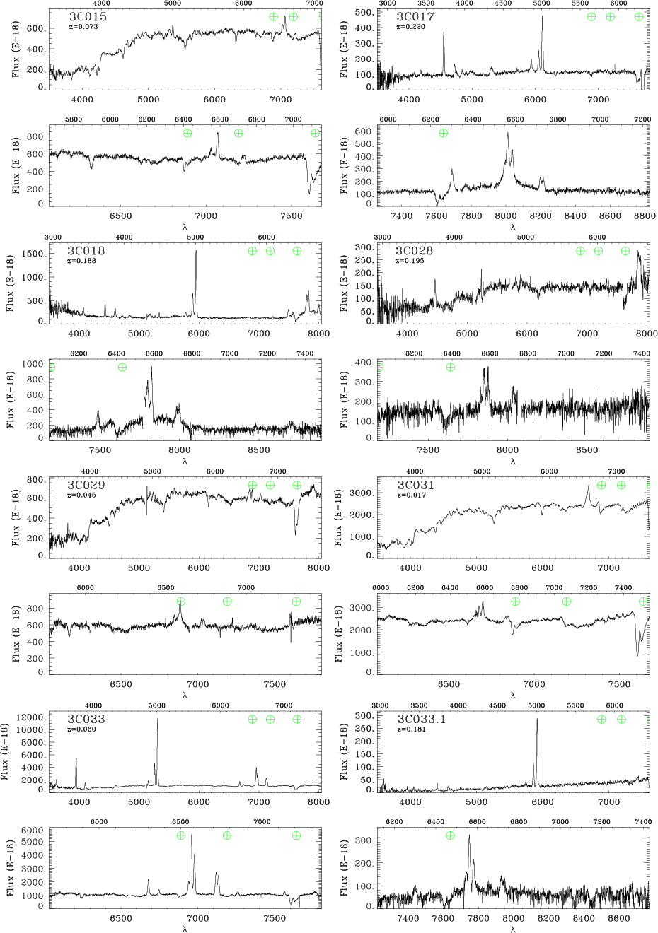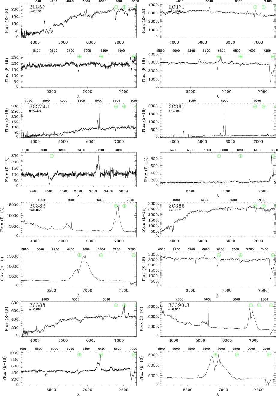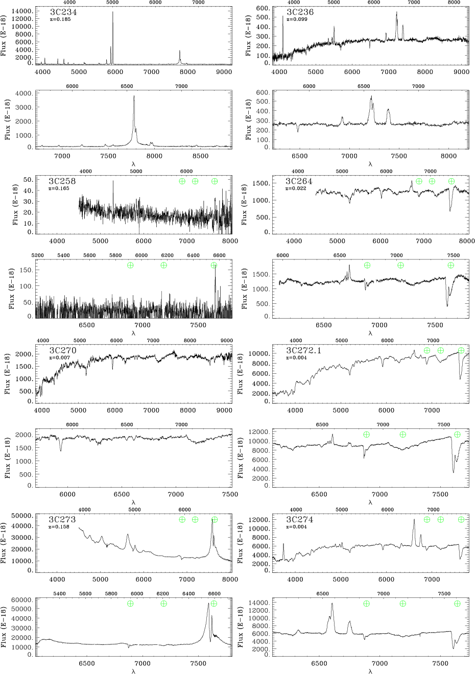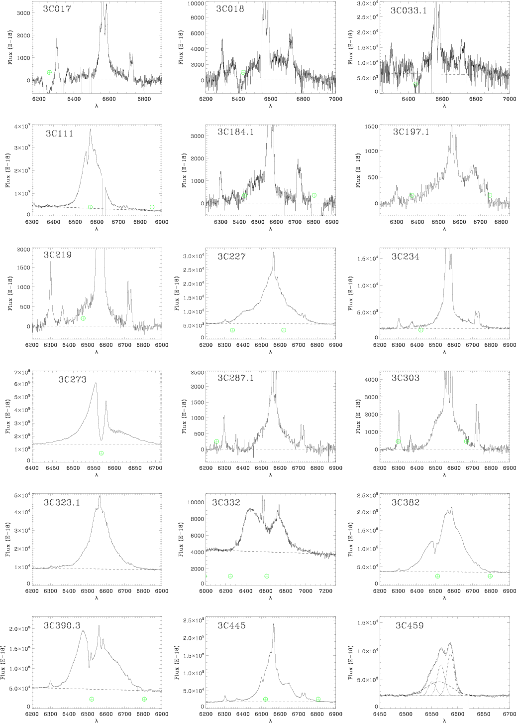 component. Broad lines can be very strong, as in 3C 273, or, as in 3C 184.1, they become clearly visible only after the subtraction of the stellar light. Figure 8 shows all spectra showing the H