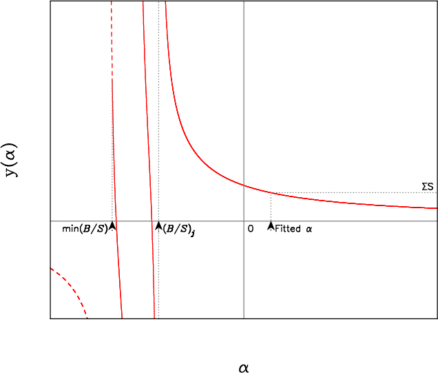 when there is in fact nothing there but background B. The expression, derived from Eq. (3), for the Cash statistic relevant to this case is