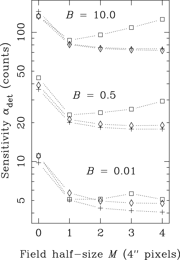 in the formula for any source detection statistic. In practice however, because B and S can often be quite well estimated by methods separate from the source detection itself, it is convenient for the sake of simplicity to make the approximation