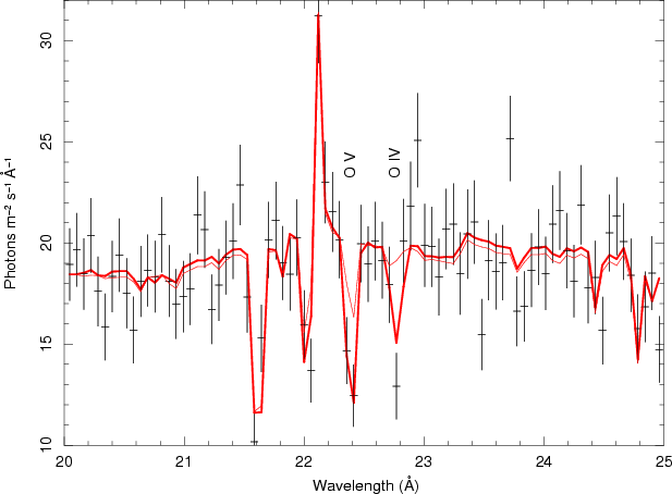 lines. Therefore, their model cannot explain the O V absorption line at 22.4 Å, which is easily observed in their published RGS spectrum. Furthermore, the depth of the O VII line is