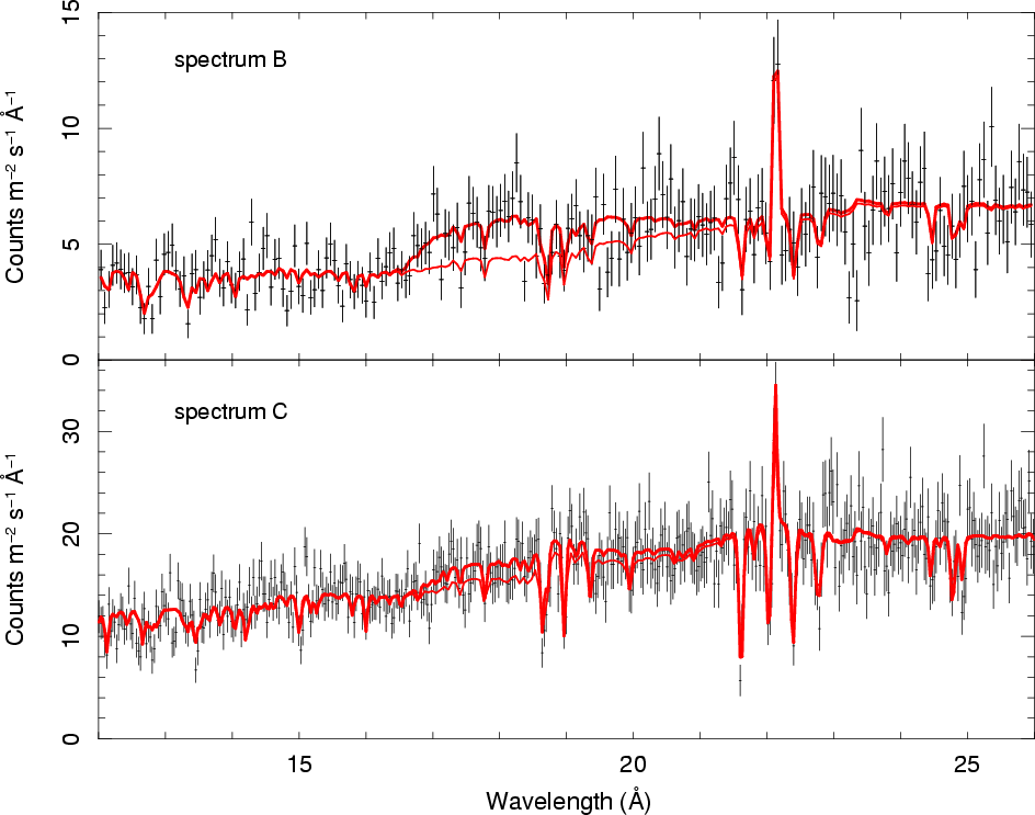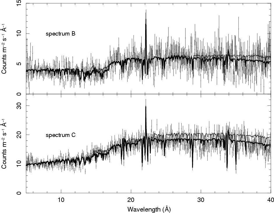 We also note that, of all our four spectra, the flux during spectrum A shows the largest variations within the given interval (Fig. 1), so the establishment of any (quasi)-equilibrium during that interval may be questioned.