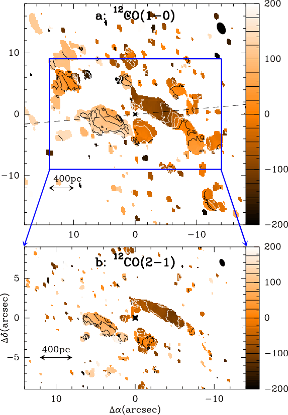 1 kpc disk of NGC 4579. Only CO(2-1) data were used in this analysis, and the short spacing correction was not considered. Most of the molecular gas in the