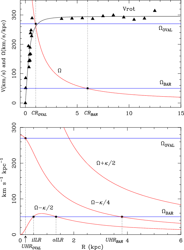 6 kpc) and close to the predicted position of the ultra harmonic resonance (UHR) (