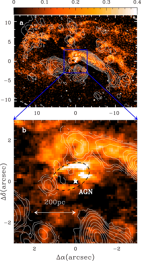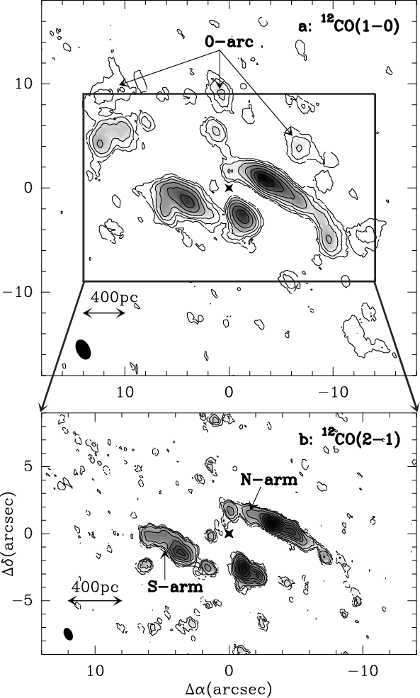 central kiloparsec was seen to be concentrated in a two arm spiral structure traceable from