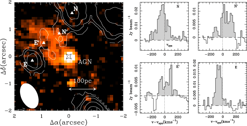 interferometer mapping of the central kiloparsec disks of AGNs. On the other hand, the 21 cm line emission of atomic hydrogen (H I) is best suited to tracing the distribution and kinematics of neutral gas in the outer disk reservoirs of AGNs (r