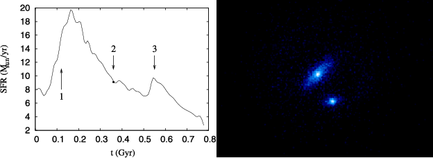 from a merger of two objects with a mass ratio 1:3. The simulation indicates
