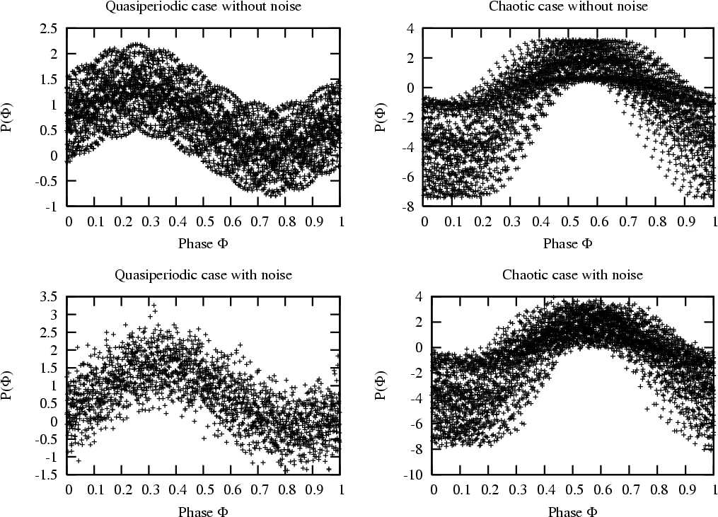 - In the realistic case (finite number of observations with Gaussian noise), it is impossible to distinguish between quasiperiodic and chaotic behaviour by classical methods of period analysis.
