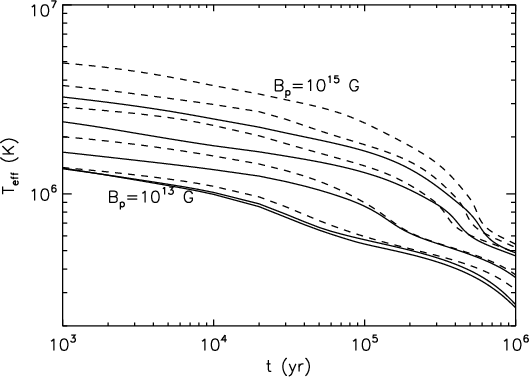 in Pons & Geppert (2007). The Hall drift causes a somewhat faster dissipation for