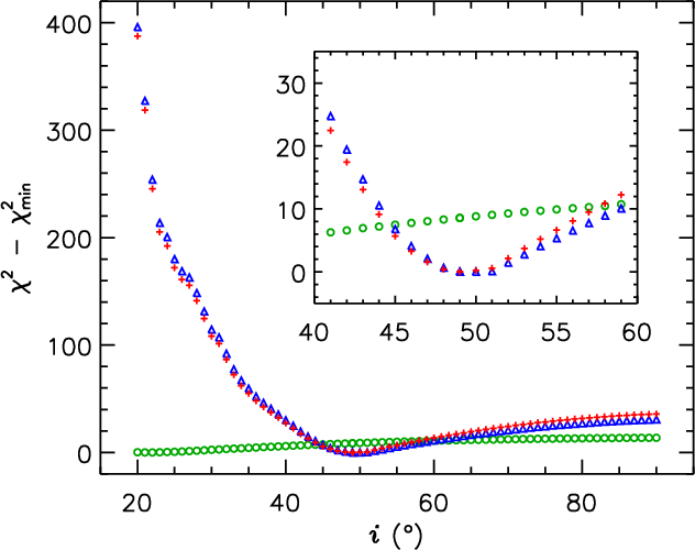 respectively. Although no formal uncertainty in the inclination was given, inspection of their reported
