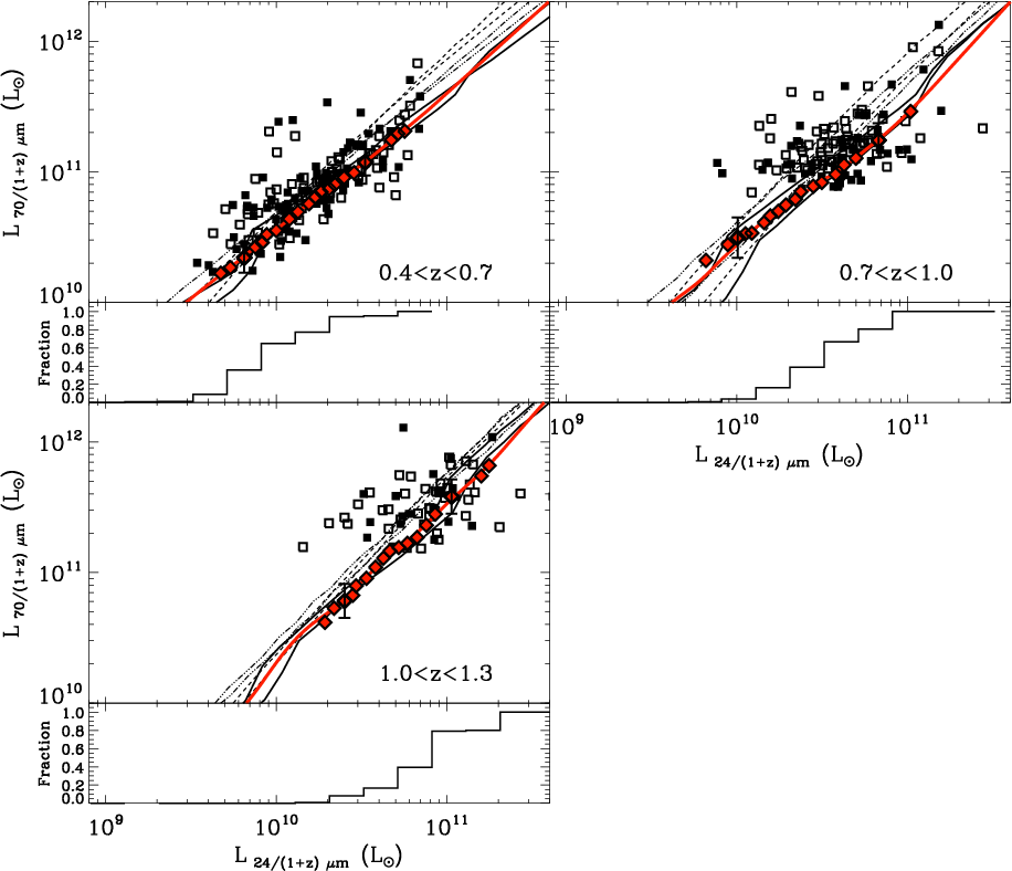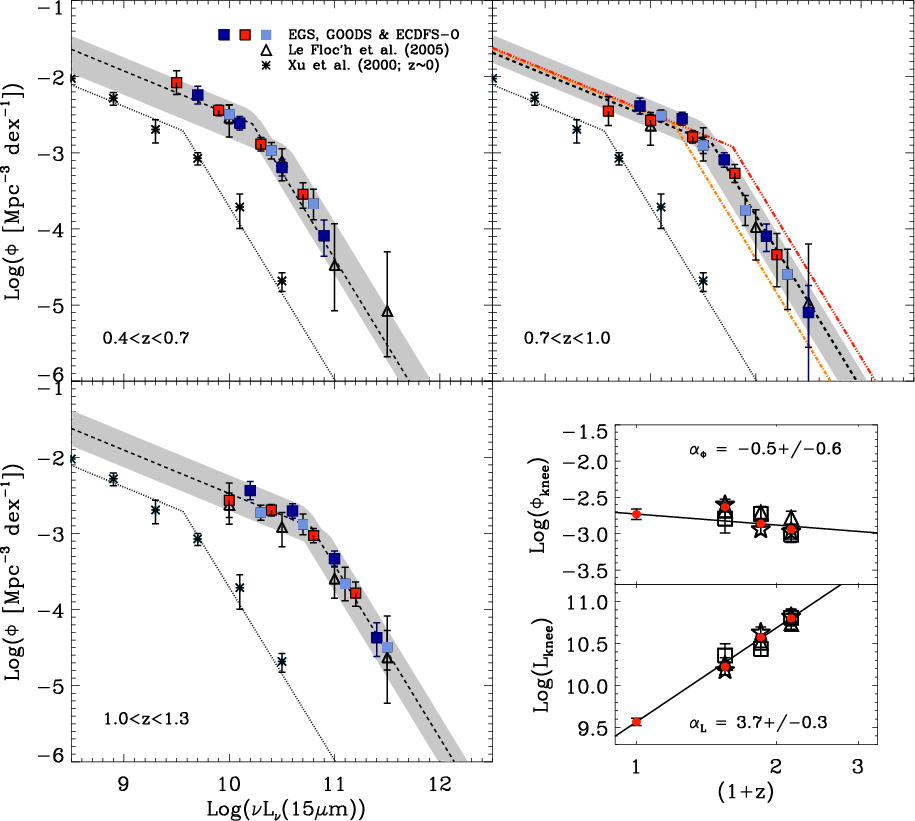 m Multiband Imaging Photometer (MIPS; Rieke et al. 2004) observations. Many authors (Xu 2000; Le Floc'h et al. 2005; Lagache et al. 2003; Chary & Elbaz 2001) have studied the evolution of the rest-frame 15