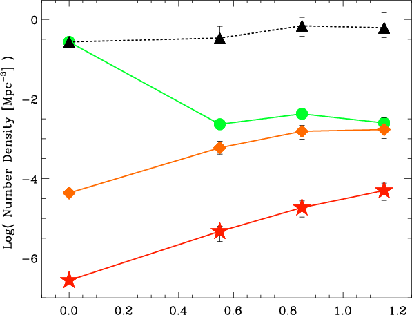 in contrast with previous claims. The comoving number density of infrared luminous galaxies has increased by a factor of