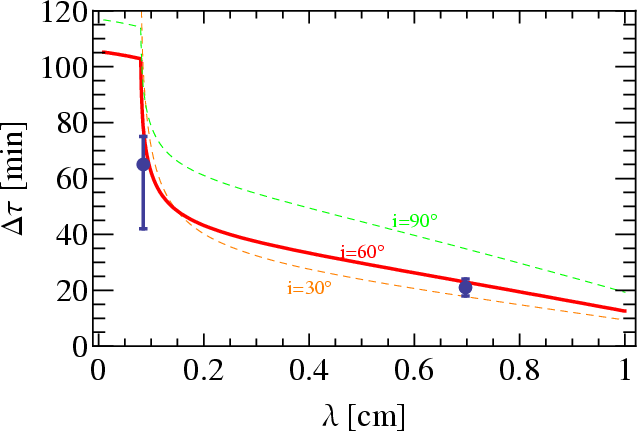 inclination angle and the size-wavelength relation much better and