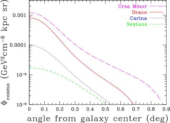 -ray flux due to the fortunate combination of the geometrical acceptance of the Fermi-LAT detector and the distance of the galaxies. Moreover, no significant enhancement is given by the presence of a central black hole or a population of sub-subhalos.