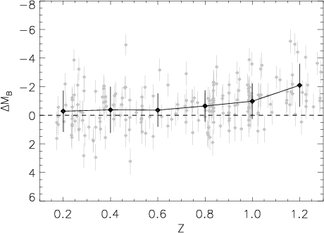 mag at redshift z=1. However, other groups, such as Rix et al. (1997) or Bamford et al. (2006), find luminosity evolution but no slope change. Moreover, these authors find differences in luminosity evolutions ranging from 0.2 to 2 mag.