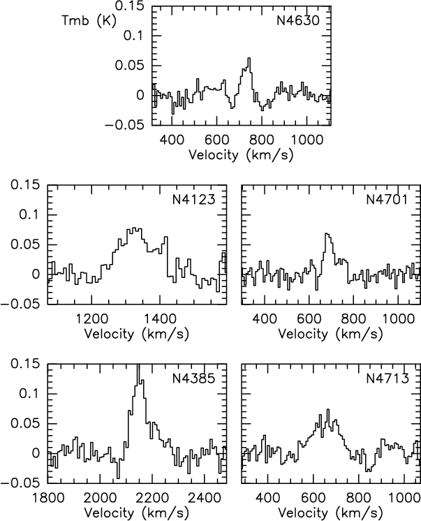 In the case of NGC 4385, NGC 4630, NGC 4701, CO(1-0) observations with more than one