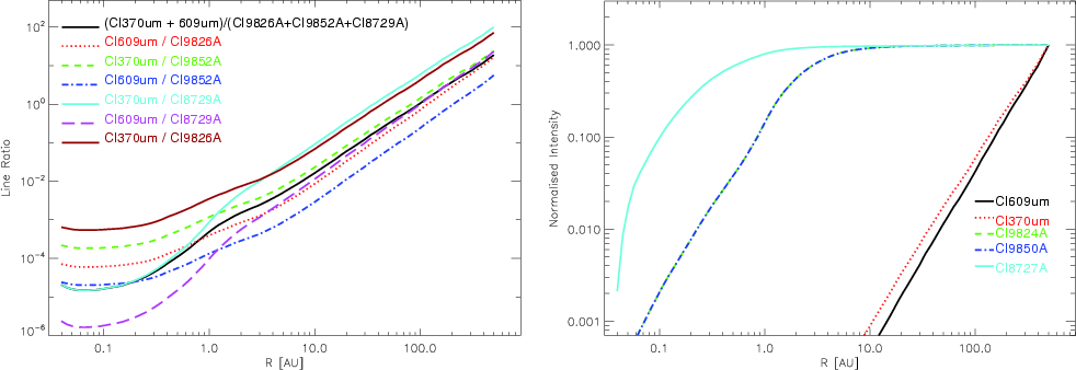 The ratio of fine structure (FS) to near-infrared (NIR) lines of neutral carbon increases as the disc radius gets larger. The main reason for this is the exponential dependence on temperature of these collisionally excited lines that dominates the emitted flux of the NIR lines. The NIR lines are approximately 15 000 K (C I 9826 Å and 9852 Å) and 31 000 K (C I 8729 Å) above ground, which makes their emissivity negligibly small at the cool temperatures of the outer disc. FS lines, on the other hand, are only 20-40 K above the ground and therefore they are not very temperature-sensitive.