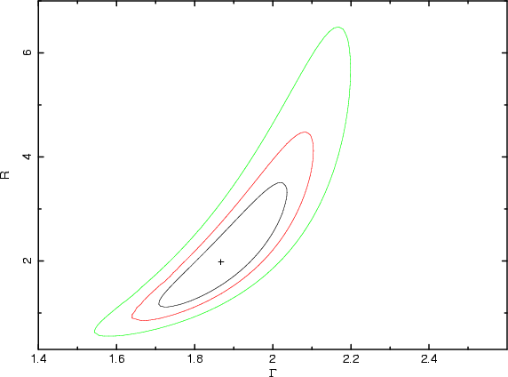 The best-fit value of R is also higher, but consistent within the errors. (It