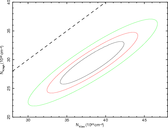 the other hand, the line-of-sight column density is different in the two observations,