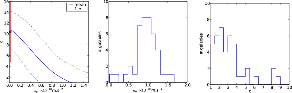 m s-2, c = 3), which is also compatible with the one obtained from a second method minimizing the scatter in the baryonic Tully-Fisher relation.