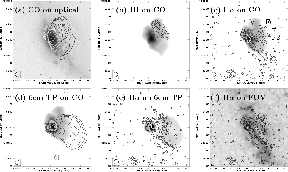- in the northern tidal arm of NGC 4438, which is devoid of atomic gas, Vollmer et al. (2005) detected molecular gas at the velocities of the stars in the tail. These authors interpreted their finding as a decoupling of the dense molecular clouds from the ram pressure wind;