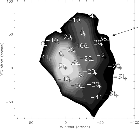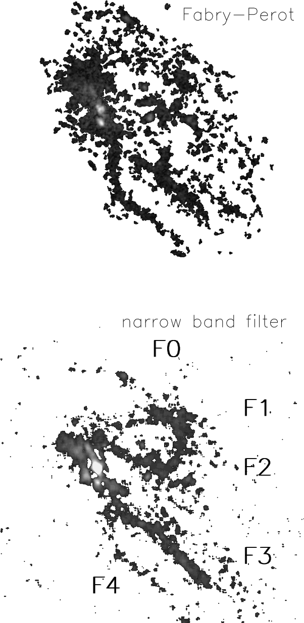 In the other regions, the absolute of the velocity difference do not exceed 31 km s-1except in a region northwest from the galactic nucleus which corresponds to the