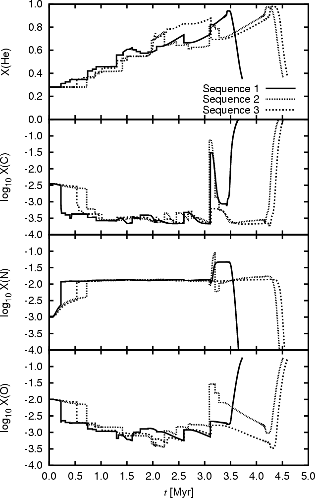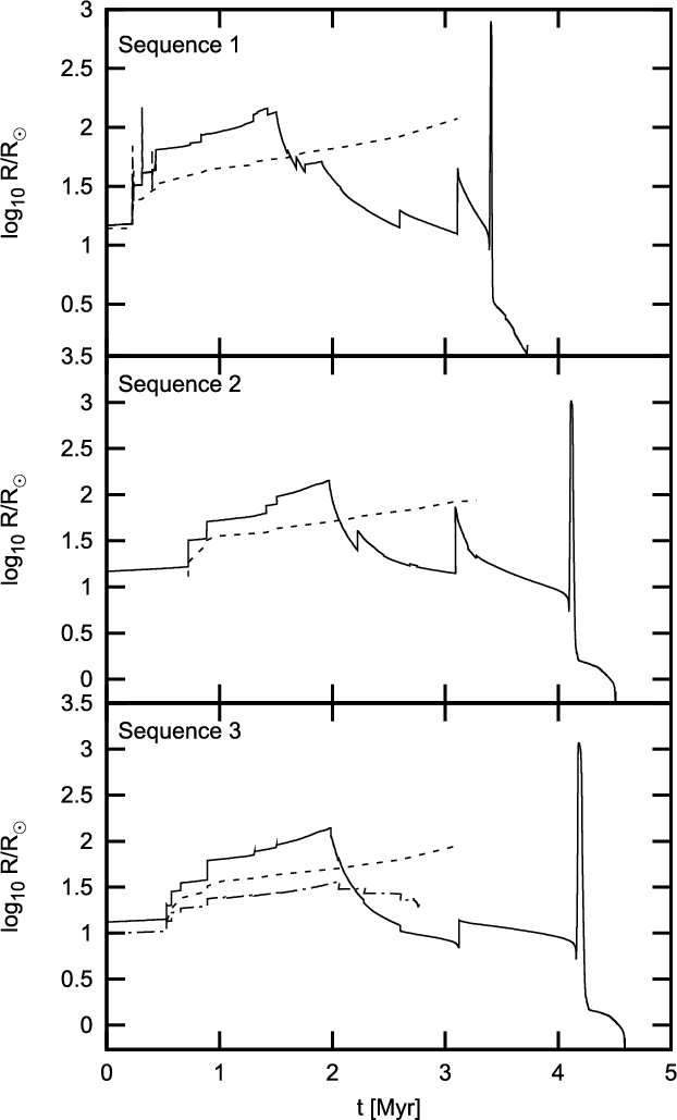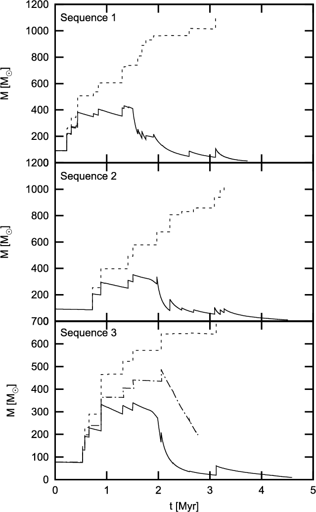merger remnant of three sequences, then follow the evolution until the onset