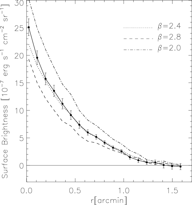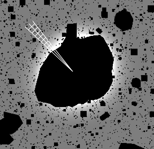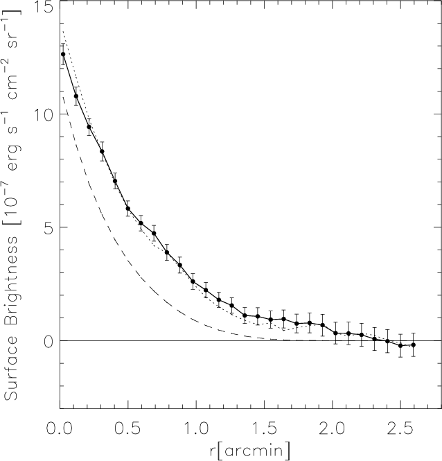 Conclusions. PSF scattering significantly contaminates our data, preventing a detection of the predicted fast shell. A real halo with observed peak flux of about