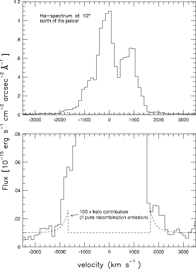 could explain such amplitudes. We show that the halo seen is caused by PSF scattering and thus not related to a real shell. We also investigated the feasibility of a spectroscopic detection of high-velocity H