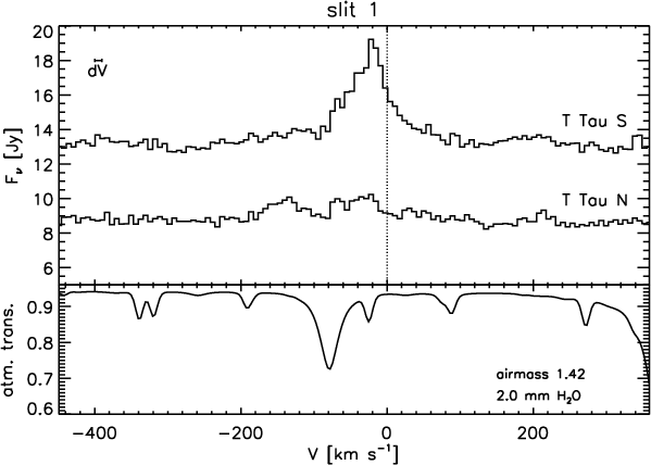 ). Radial velocity corrections have been applied to account for the Earth's orbital motion, and the indicated velocities for all spectra shown in this paper are with respect to the systemic velocity of T Tau Sa (+22 km s-1 heliocentric, Duchêne et al. 2005).