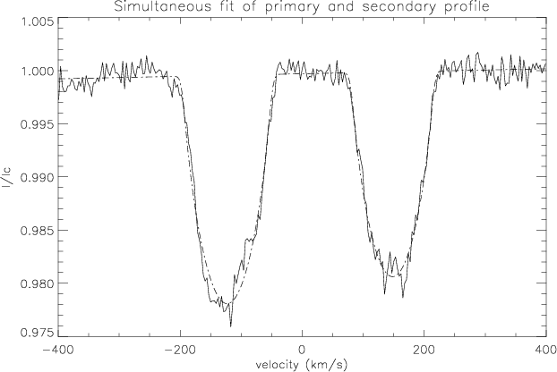 Figure 1 shows a typical LSD profile of RS Cha with both primary and secondary component well separated in radial velocity.