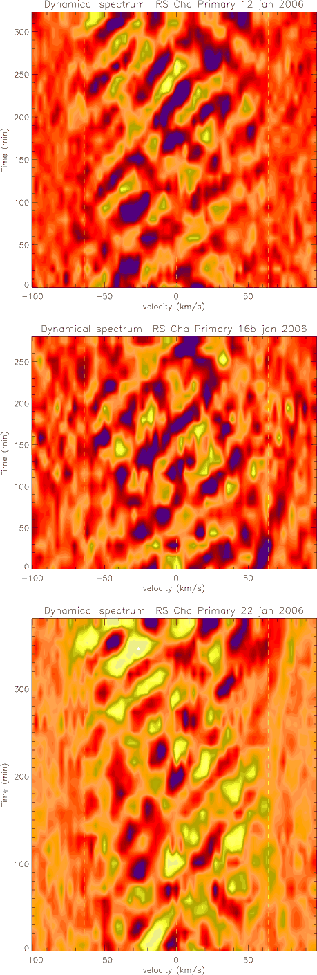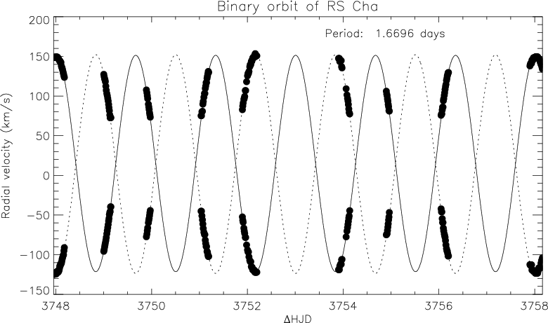 Orbital movement of the spectroscopic binary components of RS Cha. |