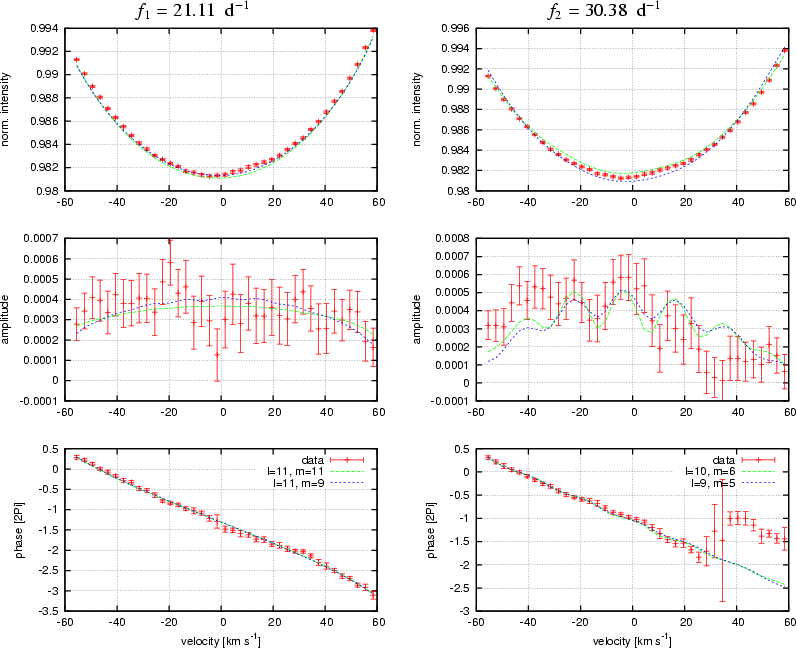 , m) = (11, 11), (11, 9) or (10, 6) and f2 = 30.38 d-1 with (