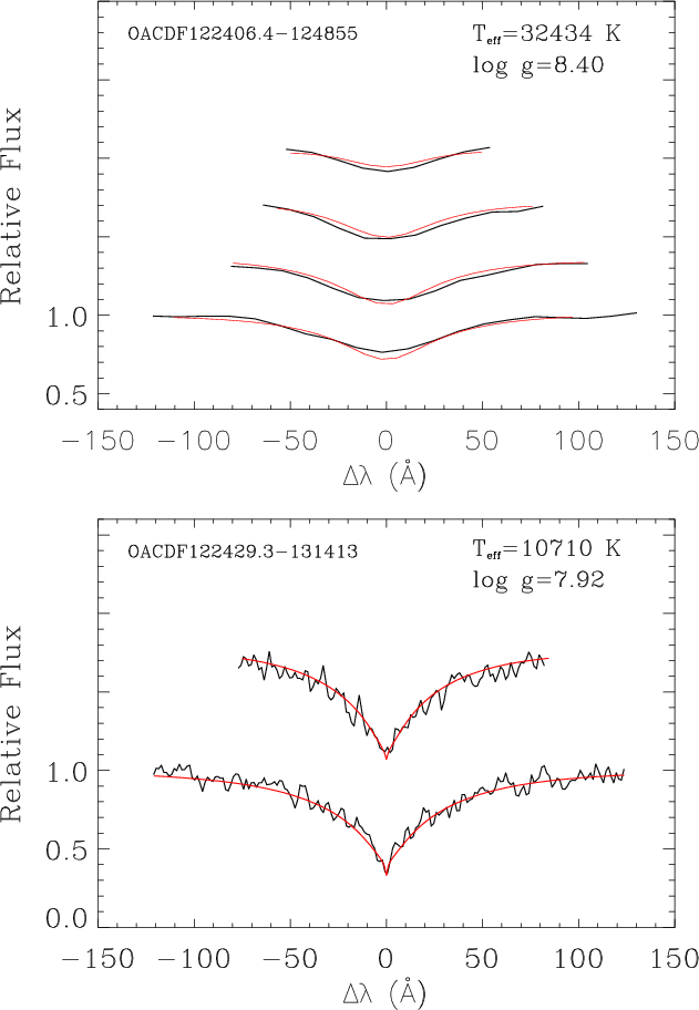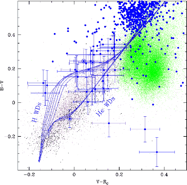 vs. B-V color-color diagram. For two bright objects, the WD nature has been confirmed spectroscopically, and the atmospheric parameters (