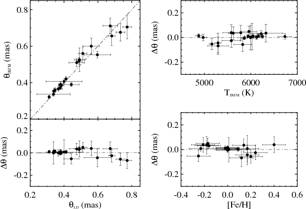 stars, especially for dwarf stars. Kervella et al. (2008, interferometry,2004) and Brown et al. (2001, transit observations) have directly measured the