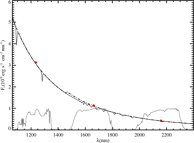 filters by integrating theoretical fluxes computed from ATLAS models, and compare them directly with the observed 2MASS