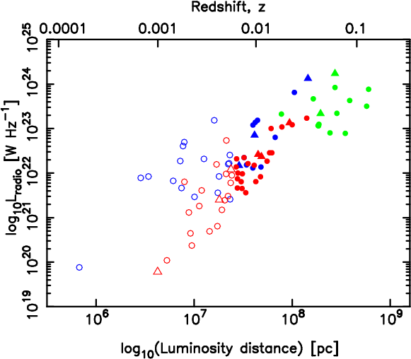 - The range of radio luminosities found may
