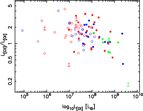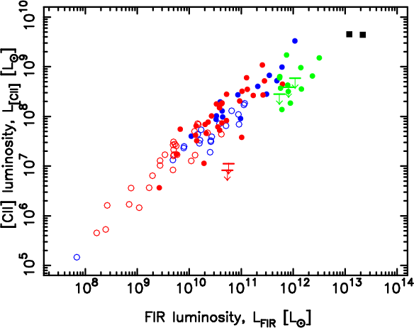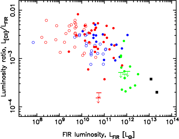 In Fig. 2 we replot the [C II]-FIR luminosity ratio