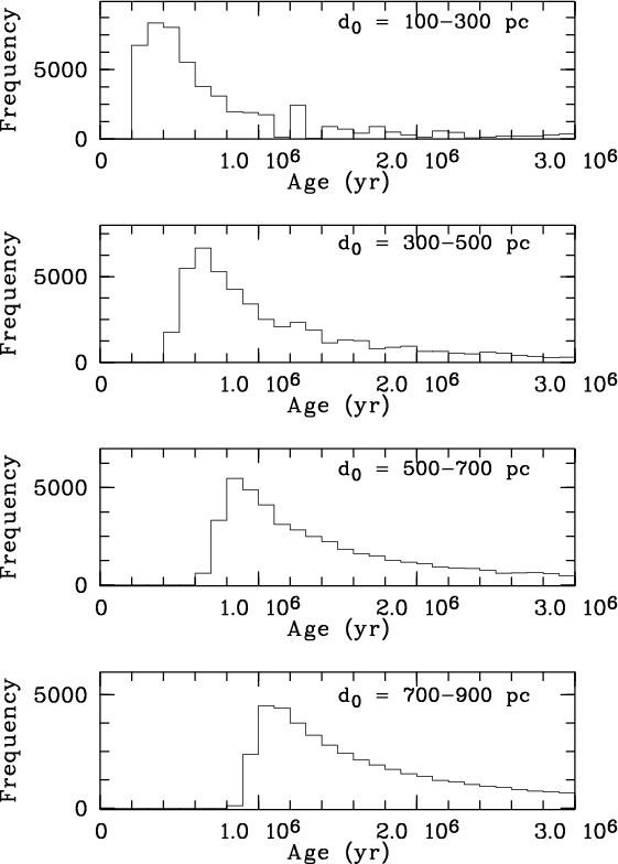 pc to less than 0.6Myr for shorter distances. Although the still rather large uncertainties on the proper motion vector, current distance and the unknown radial velocity allow for longer flight times in some cases, the majority of the trajectories imply a kinematic age significantly younger than the spin-down time of 1.5Myr. A similar discrepancy occurs for (Obj)RXJ0720.4-3125(Obj) and (Obj)RXJ1856.5-3754(Obj).