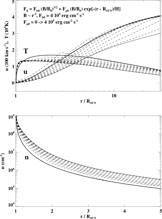 u(r)/(100 km s-1), and T(r)/(1 MK); bottom panel shows