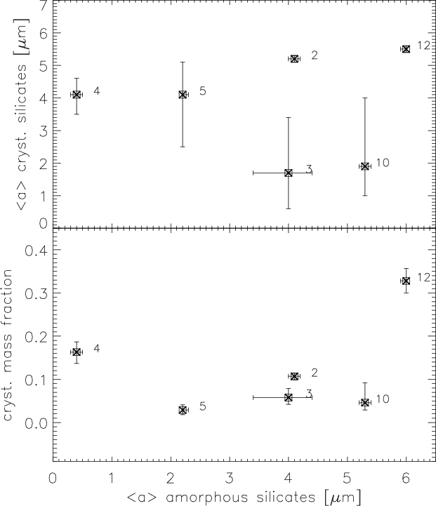 mass-averaged grain size, composition and crystallinity. The mass-averaged