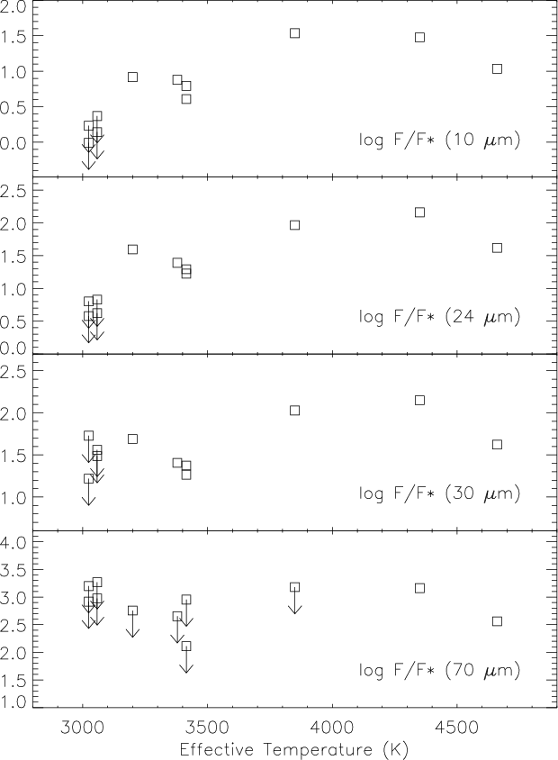 are detected with MIPS (spectral types between K3 and M5), only 1 lacks an
