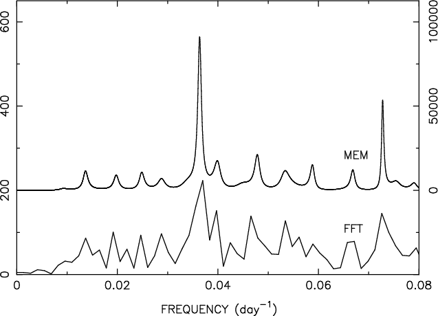 figures are from MEM. Figure 1 shows both power spectra (in the frequency range