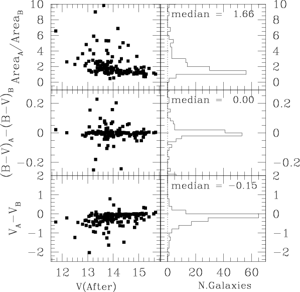 Finally, we remark that the application of our special procedure to remove large halos improves the photometry of the large galaxies in our sample with respect to the use of blind automatic procedures and increases (