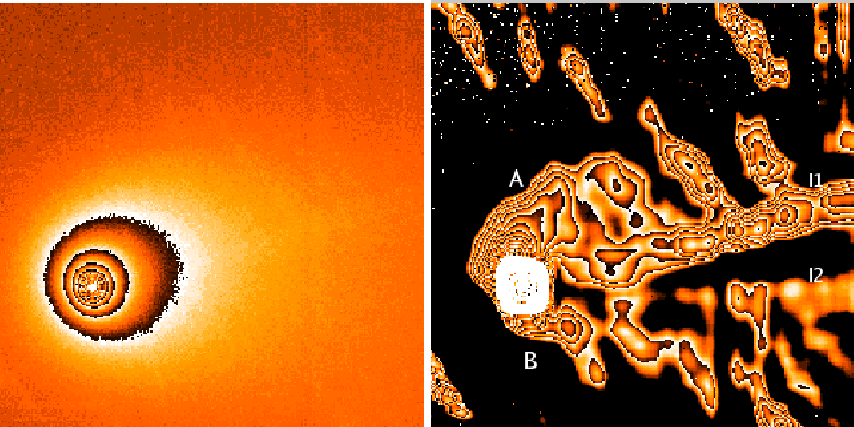 Triggered by these contradictory results, we performed a re-analysis of the optical and near-IR comet images aiming at the detection of the same or similar structures using an alternative structure enhancement technique and refined parameter sets of the Laplace filter method used for the same dataset. To enhance the presence of structures in the coma of the comet, we used a radial renormalization technique (see for instance A'Hearn et al. 1986) and the adaptive Laplace filtering technique revealing two structures in the processed images: (i) a clear curved jet pointing to the Sun and spiraling to the north-west (as projected on the plane of the sky) into the anti-Sun hemisphere (see Fig. 1), and (ii) a faint one pointing to the south-west which is barely visible in Fig. 1 and more evident in the Laplace filtered image (see Fig. 2).