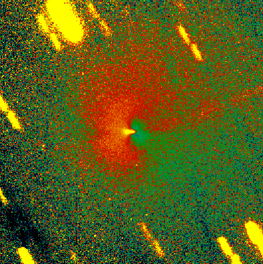Flux calibrated image of C/1999 T1 (McNaught-Hartley) on Feb. 05, 2001, with a look-up table that allows us to visualize the isophotes stretching