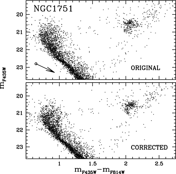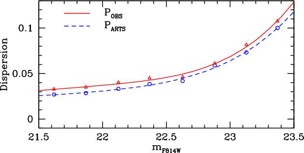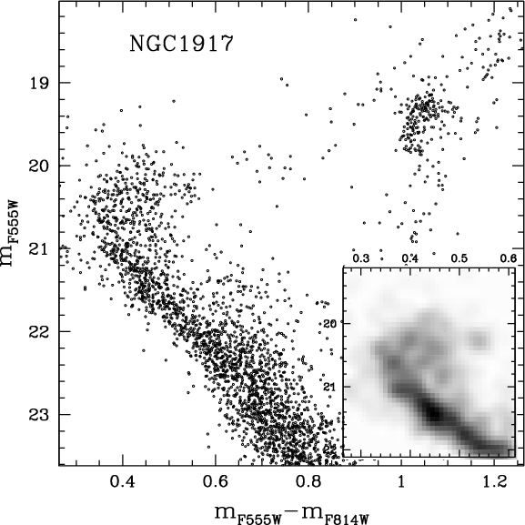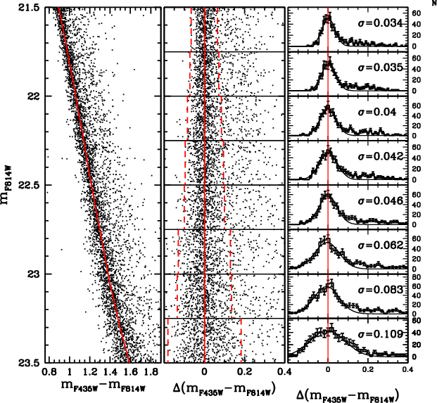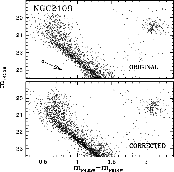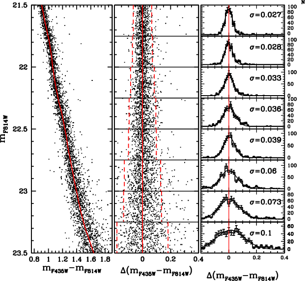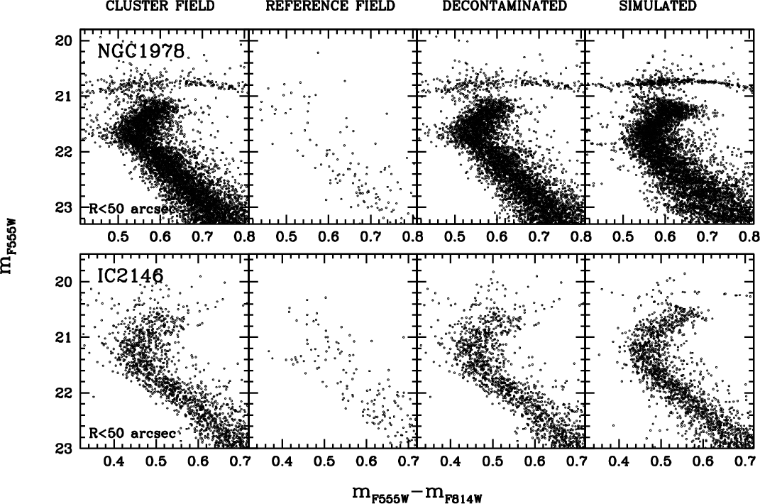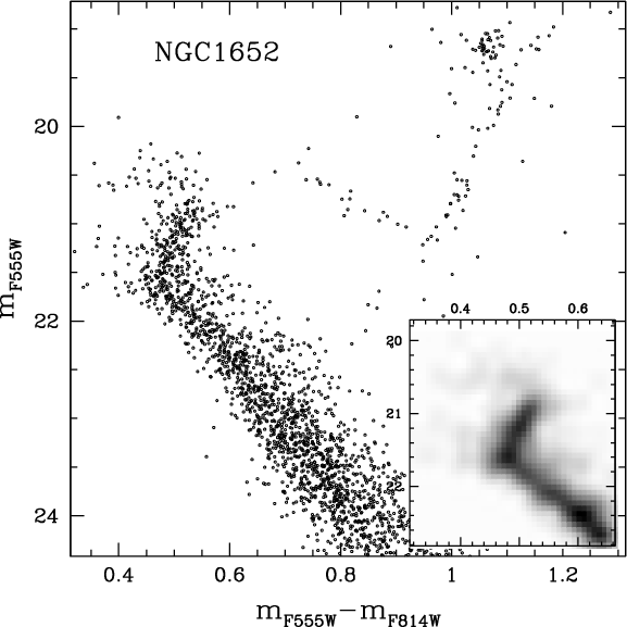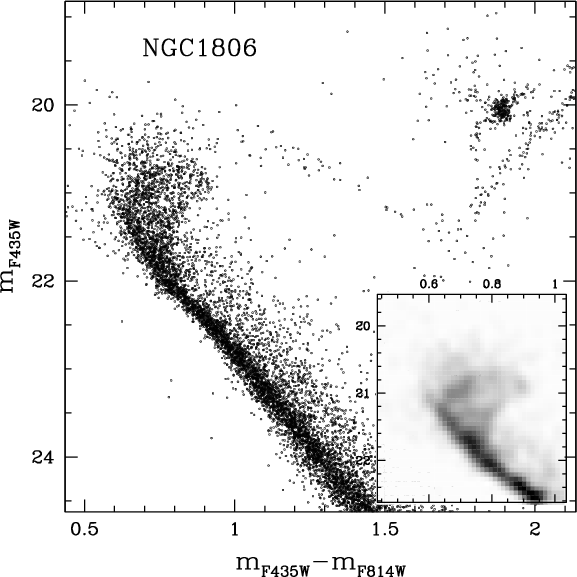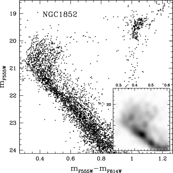 Unfortunately, in an old population, such a difference in age corresponds to a difference of a few hundredths of a magnitude at the level of the MS turn-off (TO) and SGB. At the moment, it is not possible to firmly establish a spread in a cluster's MSTO with this amplitude, given the presence of differential reddening and difficulties in doing systematically accurate crowded-field photometry at this level of precision.