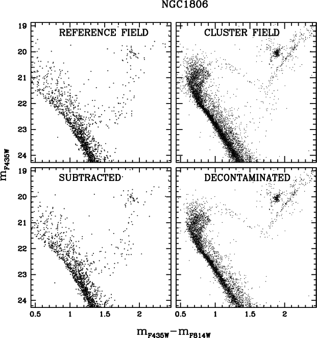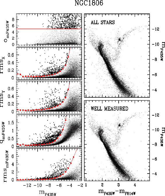 for NGC 1806. Red lines separate the well-measured
