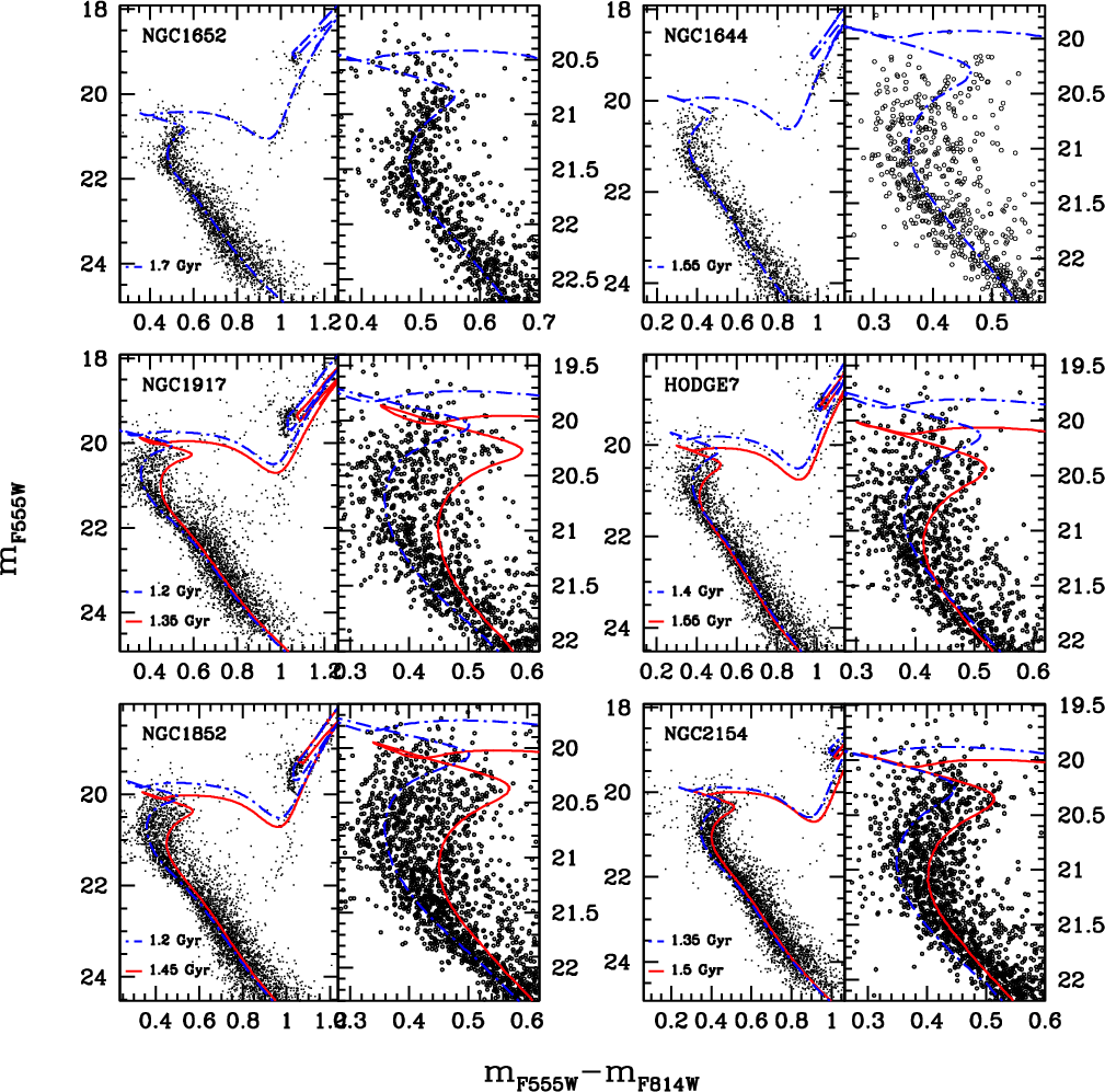 Figure 38: As in Fig. 37 for NGC 1652, NGC 1644, NGC 1917, HODGE7, NGC 1852, and NGC 2154. |
