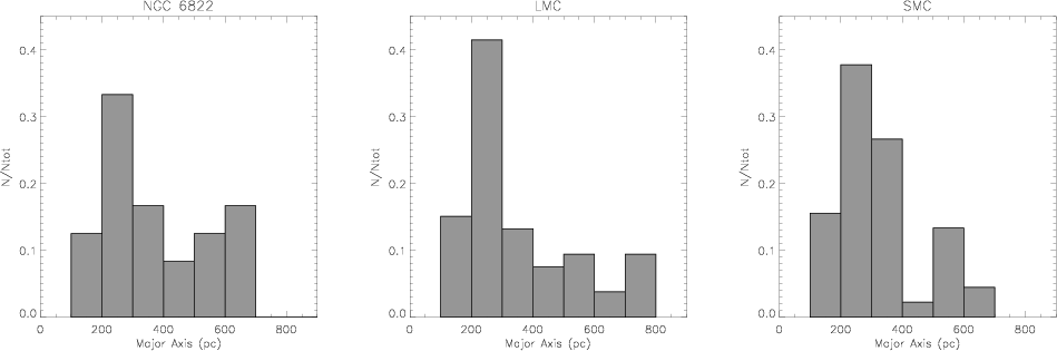 sizes of all the detected star complexes of NGC 6822 and the